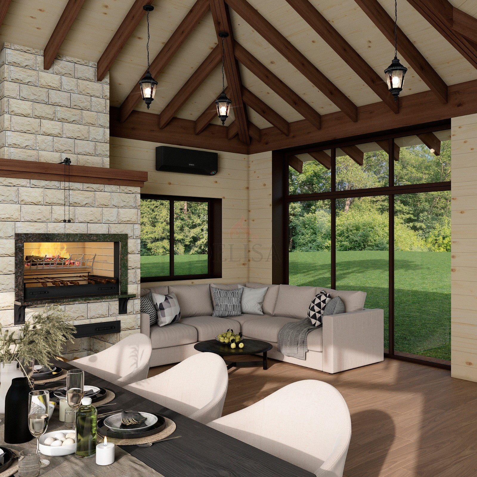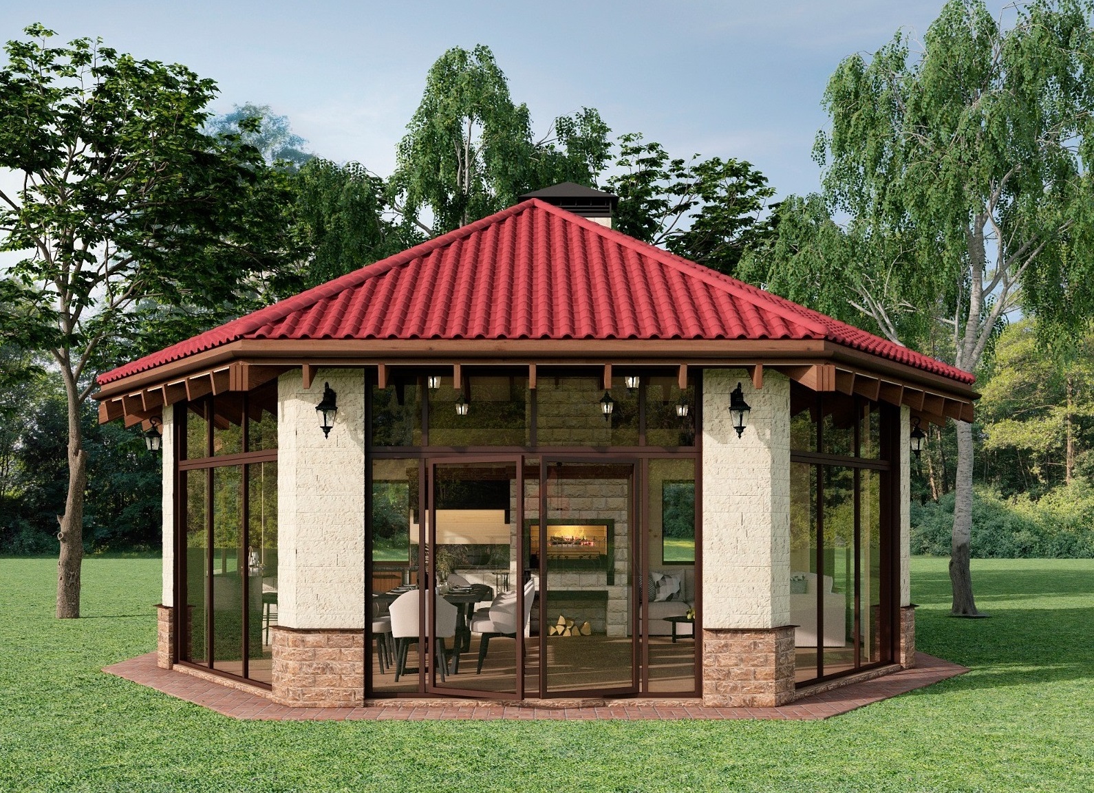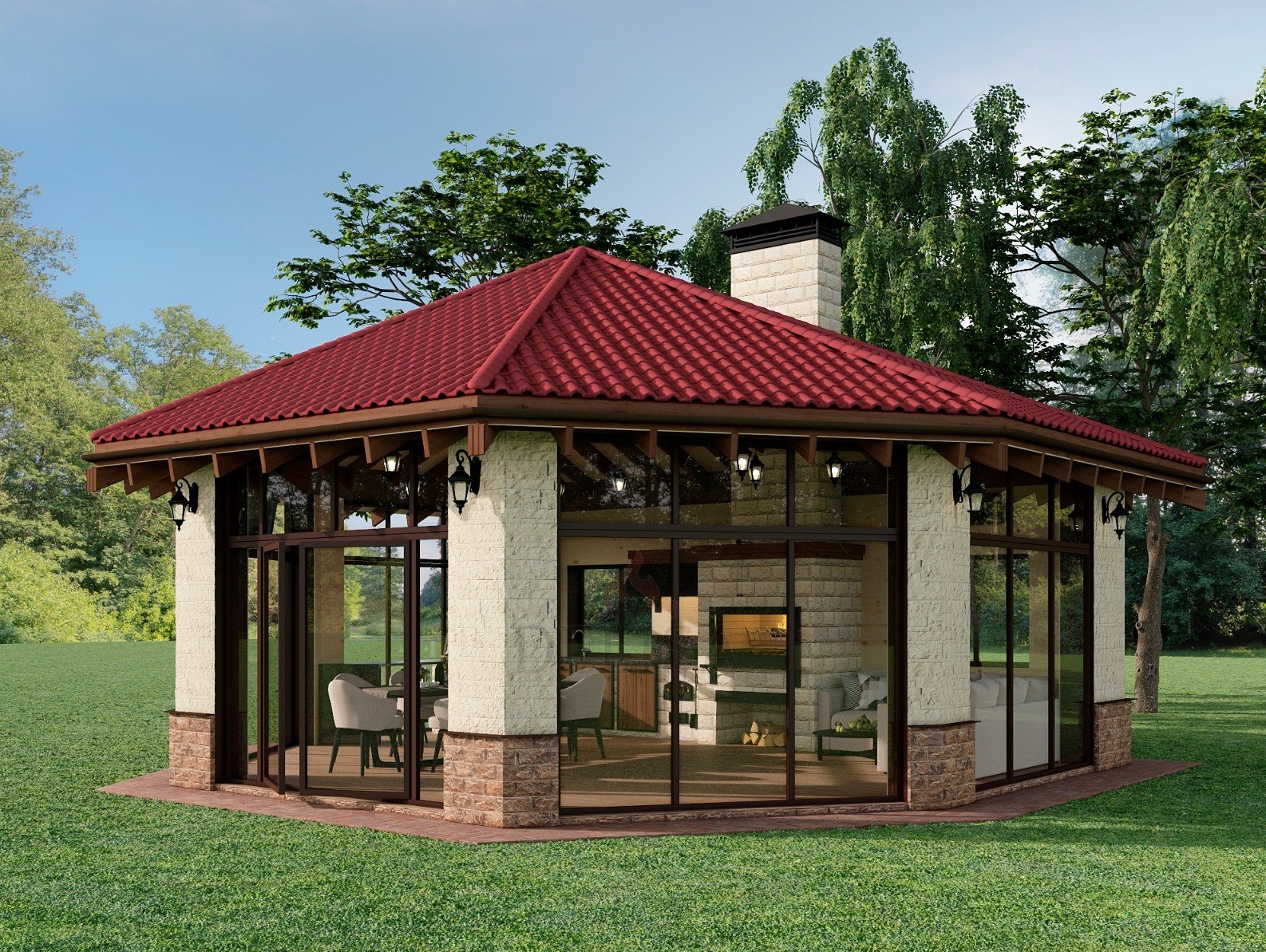 Закрытые беседки с барбекю