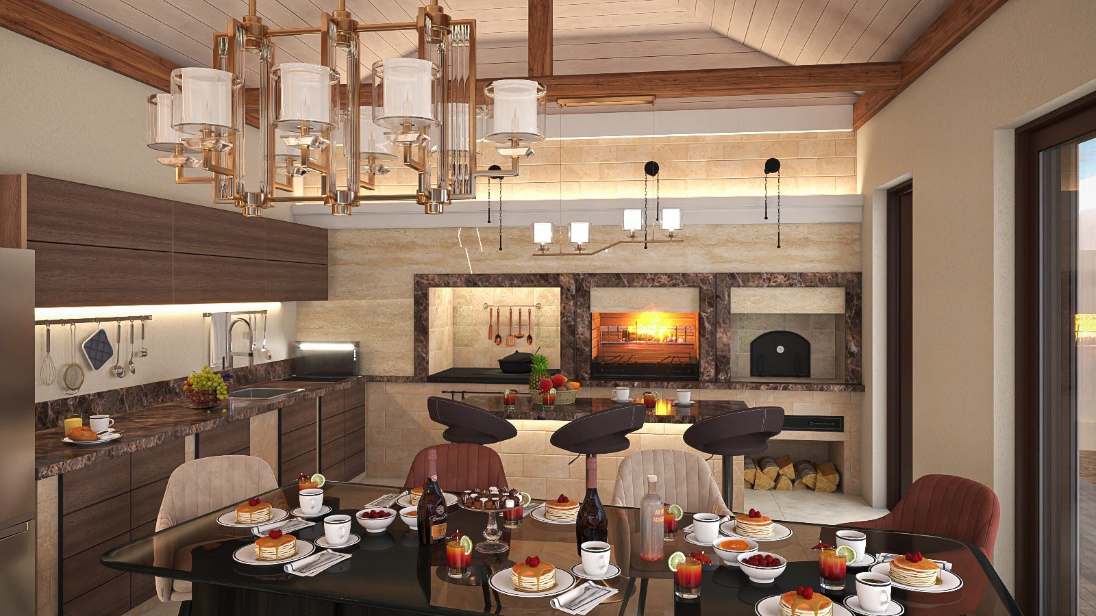 Закрытые беседки с барбекю
