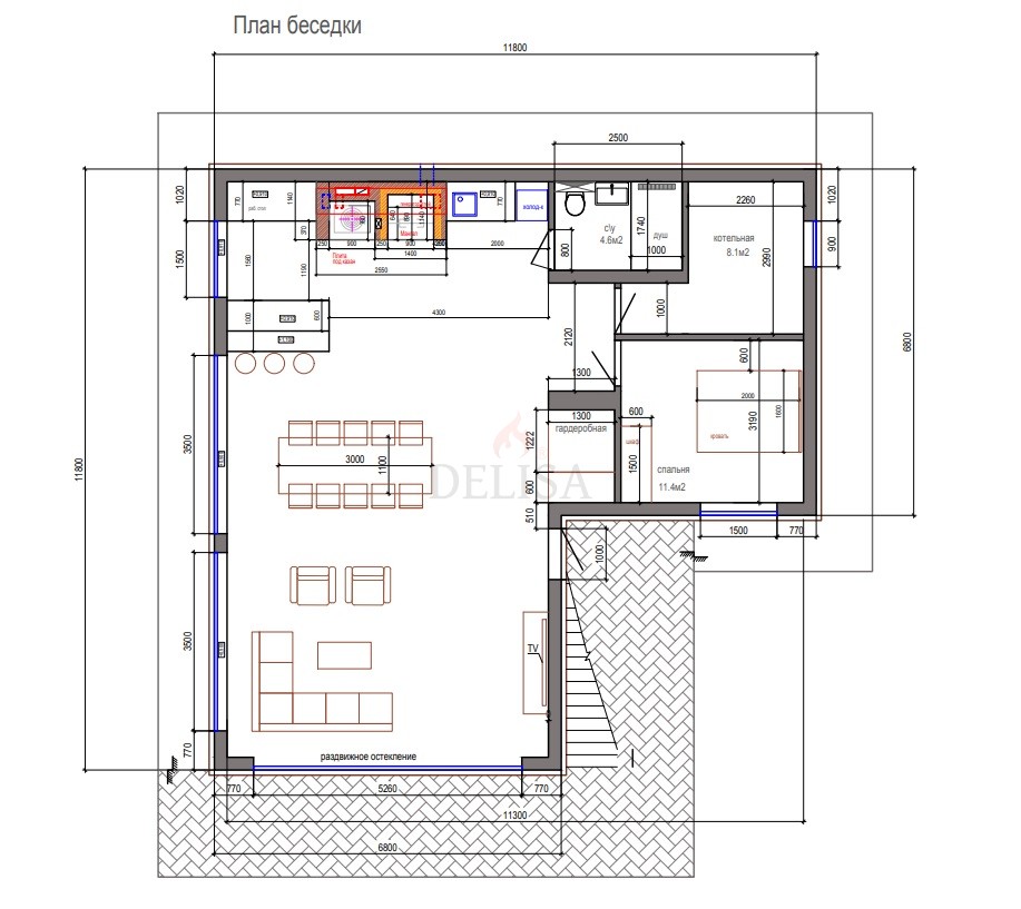 Беседка с камином и барбекю Ильинское